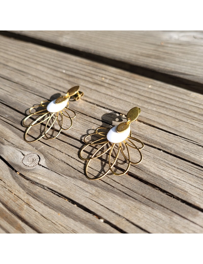 Boucles d'oreilles fleur blanche